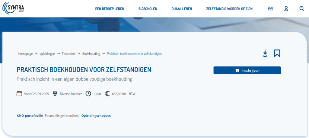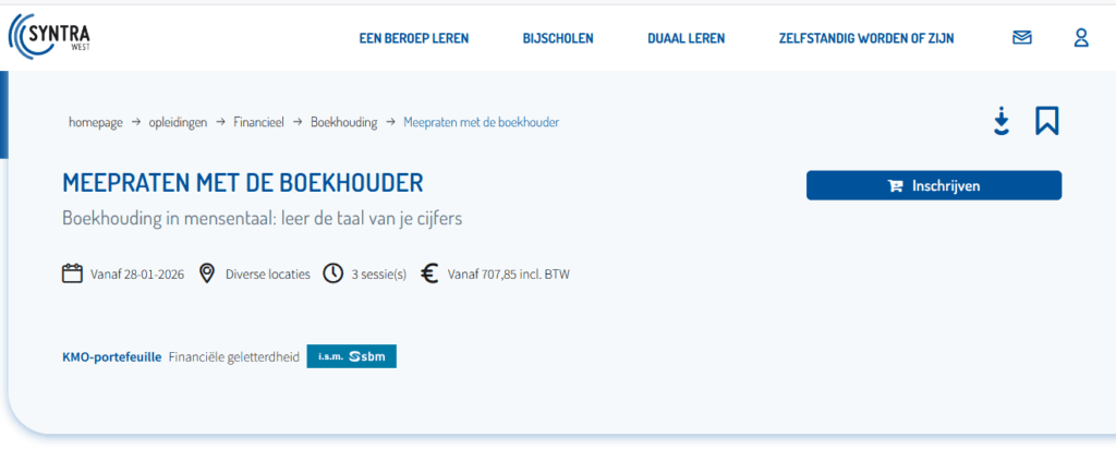 Een leuke cursus is bijvoorbeeld ‘Meepraten met de boekhouder’, een aanrader voor elke ondernemer of zelfstandige die toch wat meer thuis wil zijn in wat de boekhouder allemaal doet :