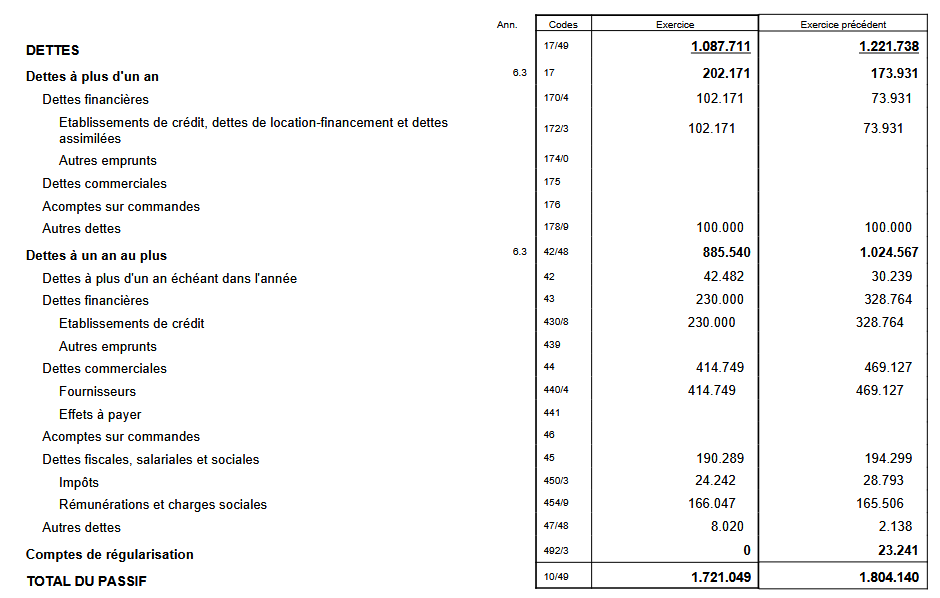 Le total du passif est de 1.721.049 EUR.