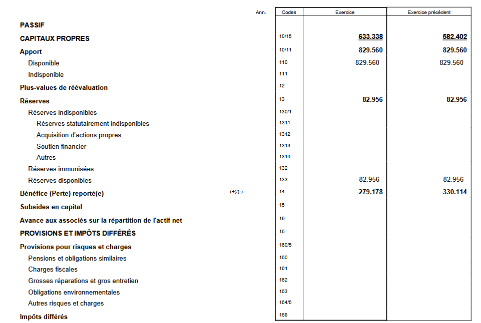 Exemple du calcul de la solvabilité dans un bilan belge