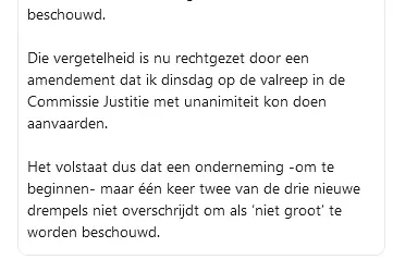 Deze wet behandelt wel alleen het optrekken van de criteria bij vennootschappen (en groepen van beperkte omvang).