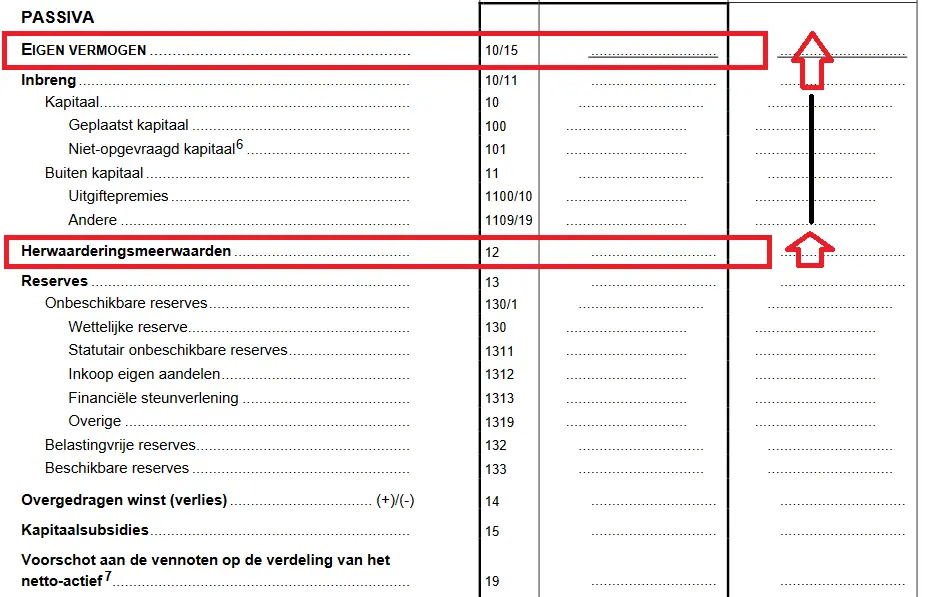 Een interessante piste kan zijn om dergelijke activa te ‘herwaarderen’. Dat gebeurt via een herwaarderingsmeerwaarde op de balans. En waar vinden we die herwaarderingsmeerwaarde precies? Ah, toch wel onder het eigen vermogen zeker!