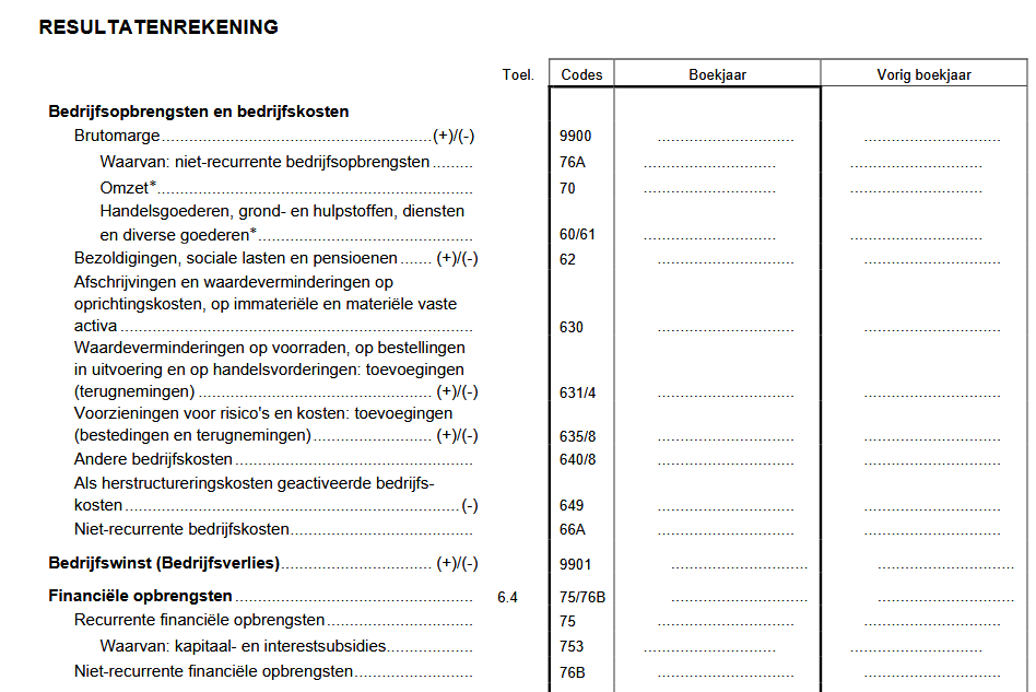 In de resultatenrekening kan je zien welke inkomsten en kosten het bedrijf het voorbije boekjaar heeft gehad, en welke winst (of verlies) het bedrijf daar uiteindelijk aan overhoudt.